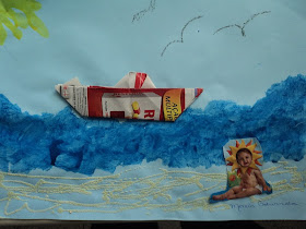 | Atividade com pintura utilizando pincel e tinta guache, cola dolorida no sol e colagem de materiais diferenciados. |